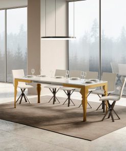 Meraviglioso tavolo allungabile Rayan Evolution con piano bianco lucido, un tavolo che è anche un prezioso elemento d’arredo insostituibile. Infatti, la bellezza del tavolo moderno Rayan è evidente nelle bellissime gambe lavorate e sagomate per conferire una forma unica e distintiva.