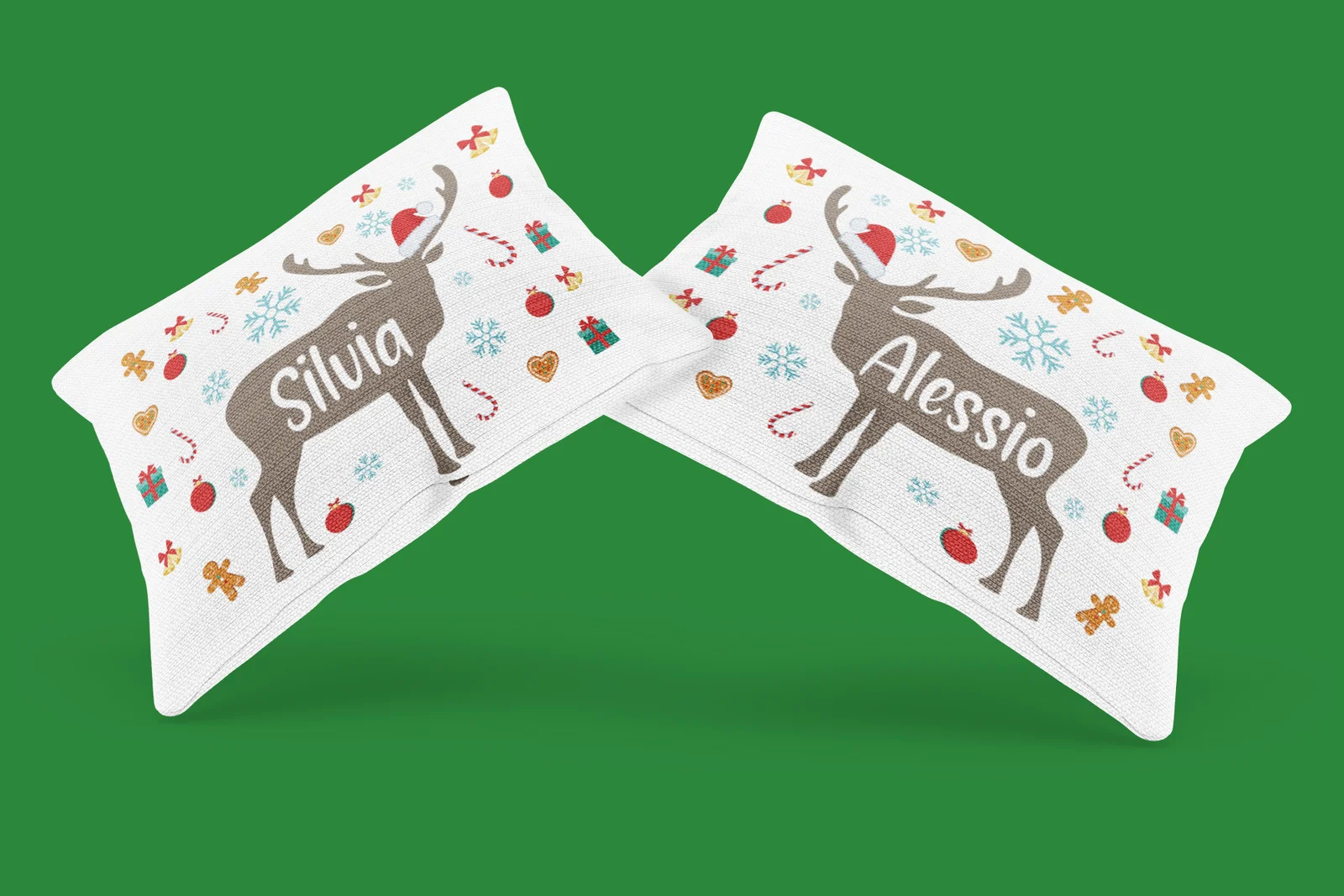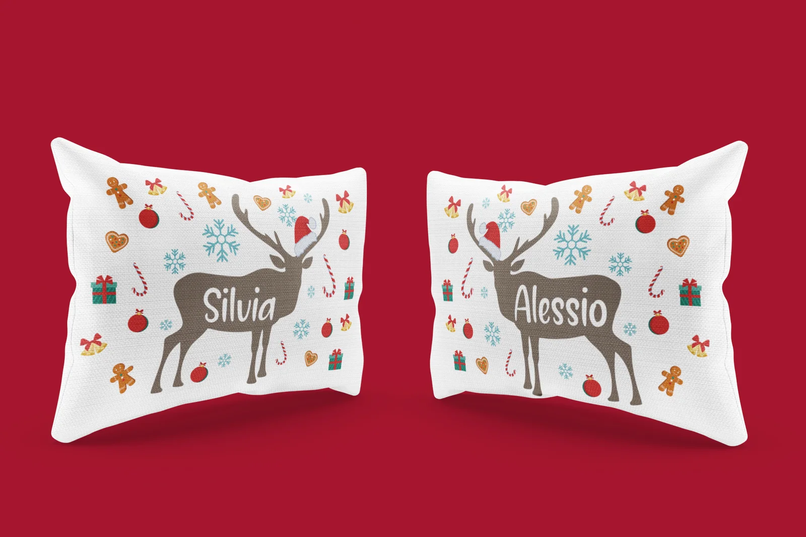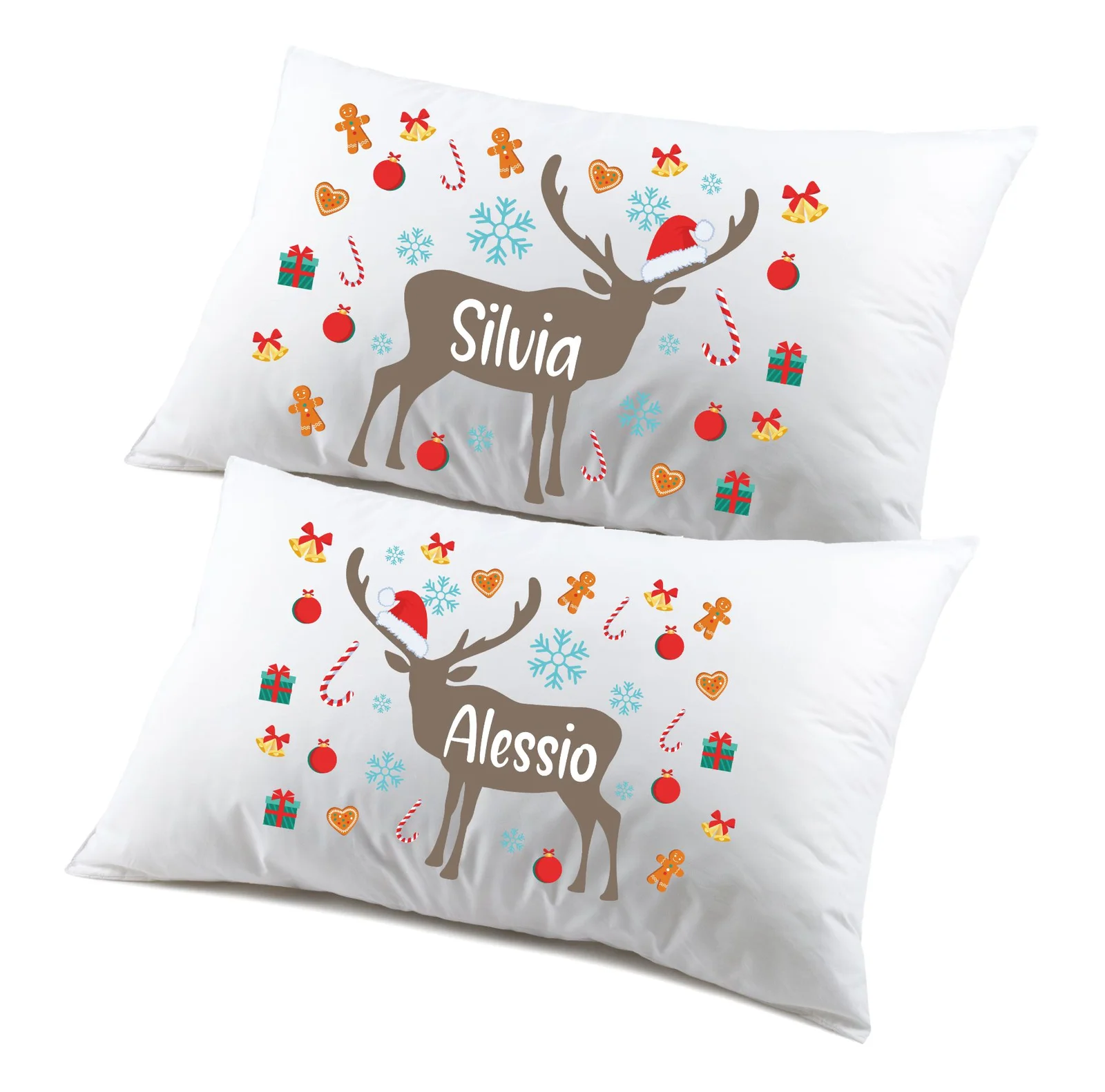 Regalo Natale federe Natalizie Coppia di federe Personalizzabili matrimoniali Divertenti renna Natale Personalizza con Nome