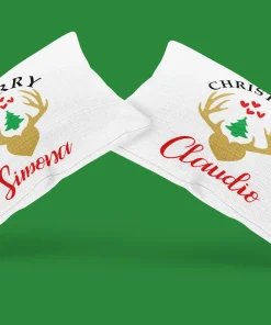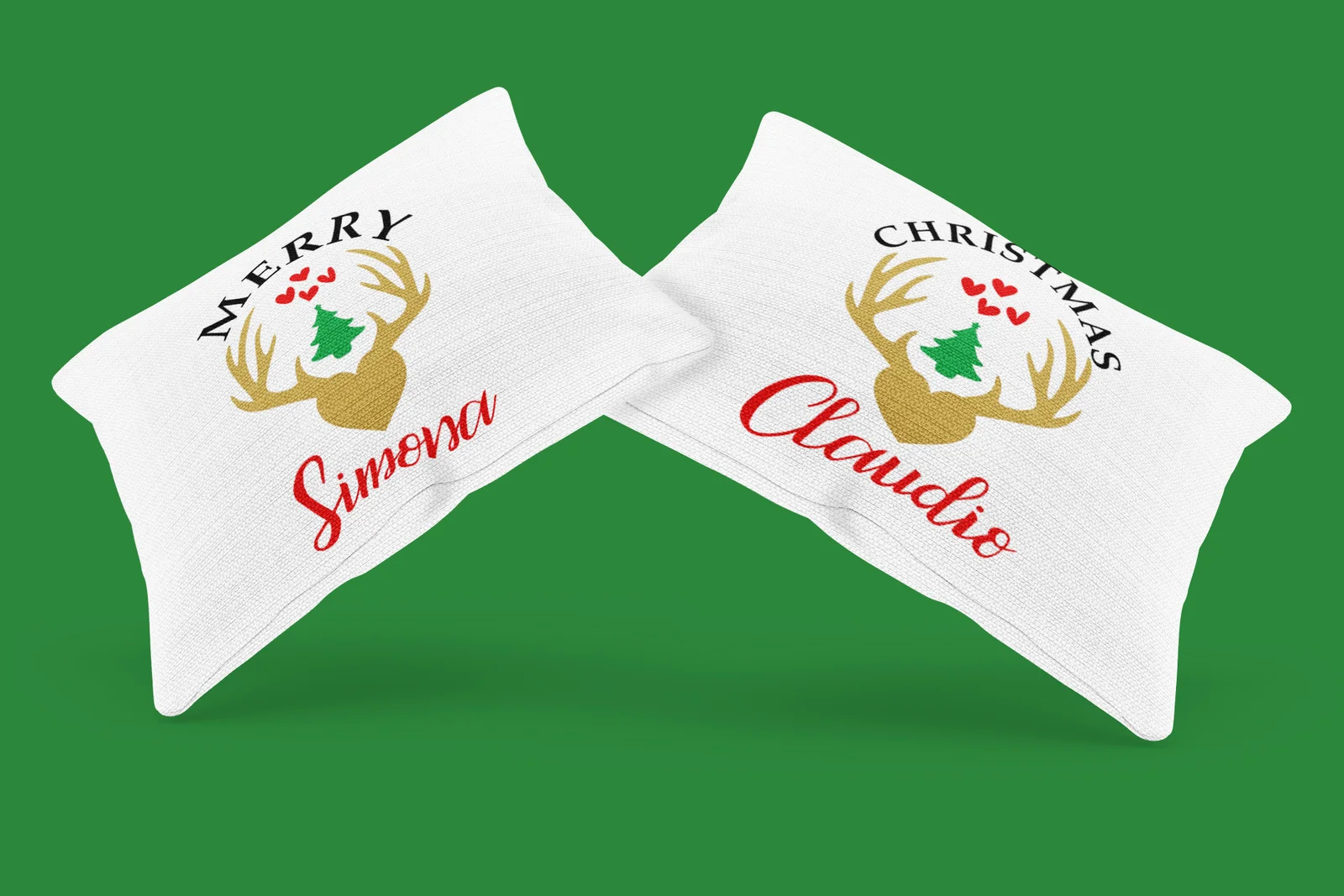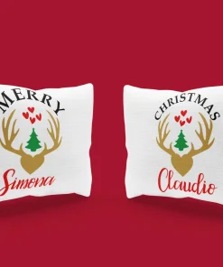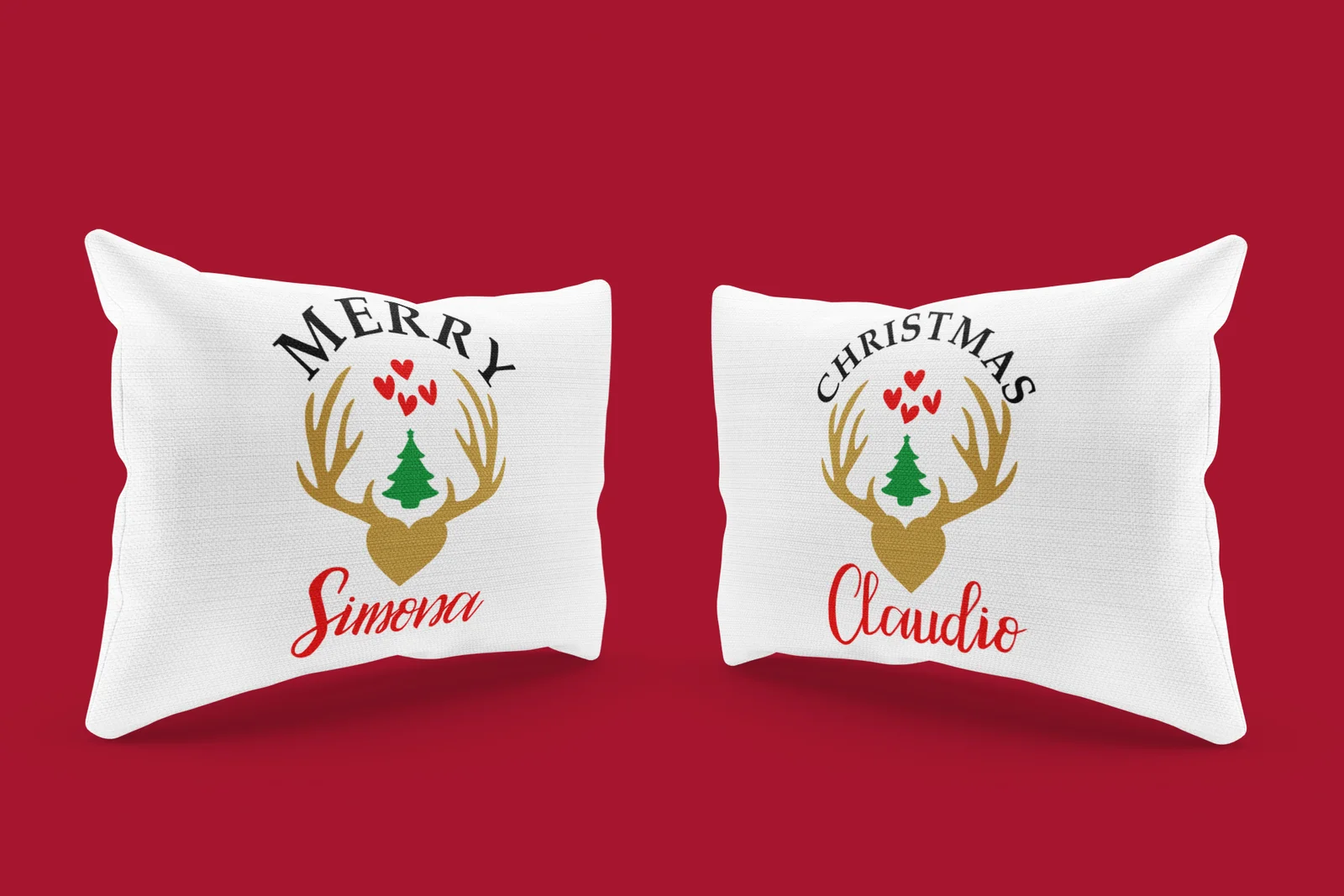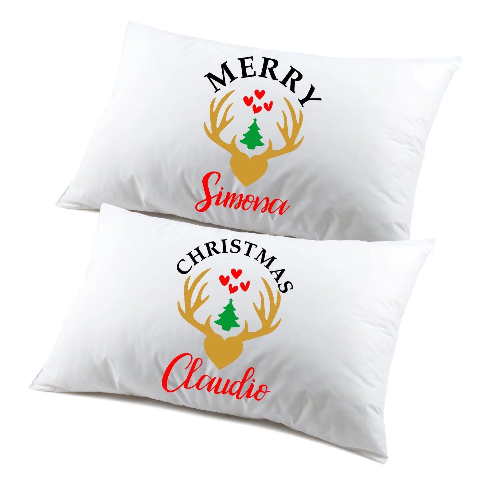 Regalo Natale federe Natalizie Coppia di federe Personalizzabili matrimoniali Divertenti Renne Merry Christmas Personalizza con Nome