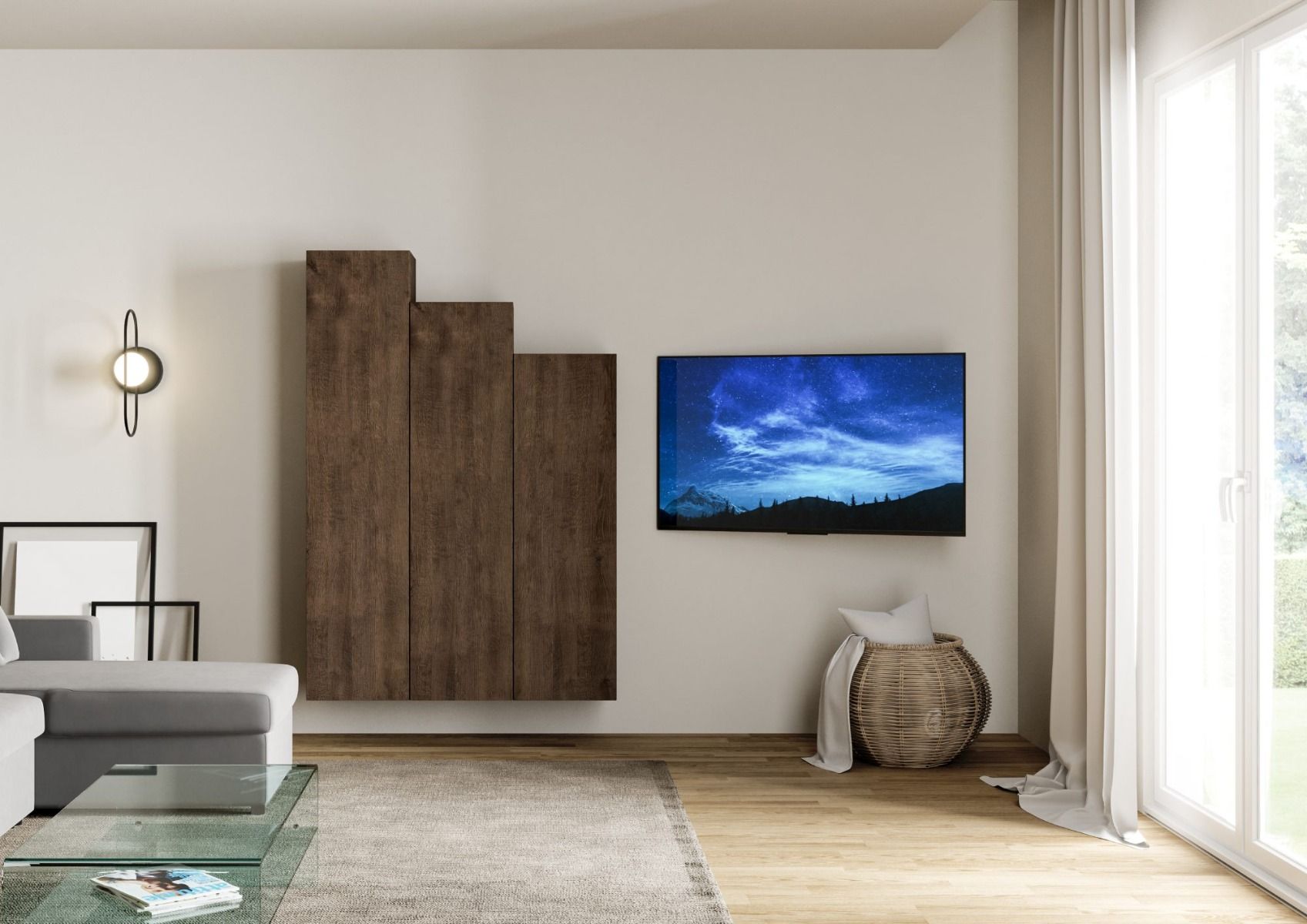 Regolo – Composizione per ingresso o soggiorno pensili verticali colore noce