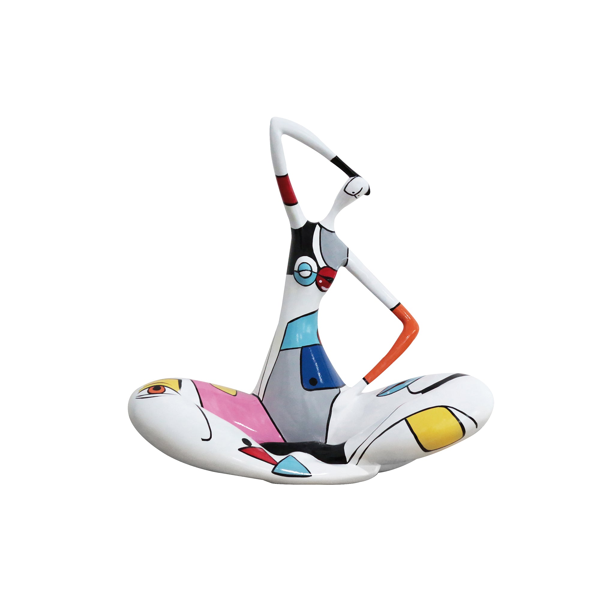 Fantastica scultura in poliresina di colore bianco realizzata a mano e decorata con un particolare effetto a mosaico con colori accesi e vivi tipici di uno stile moderno. La scultura raffigura una donna attraverso delle linee molto armoniose che confluiscono nella creazione di un design semplice e moderno che adatta questa scultura in ambienti di casa, di ufficio e anche nelle attività commerciali.