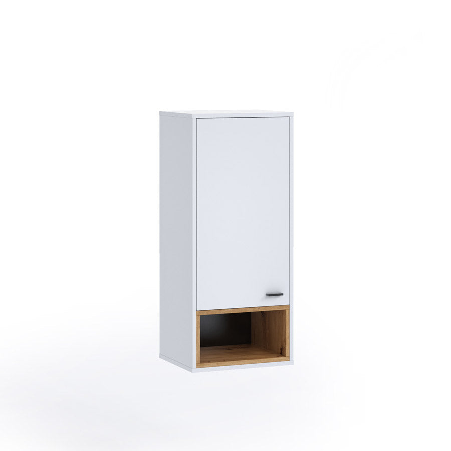 Pensile da appendere sulla parete della tua zona giorno o della cucina, realizzato in legno e disponibile in due colori: bianco opaco con vano finitura naturale, oppure interamente naturale con vano nero opaco.
