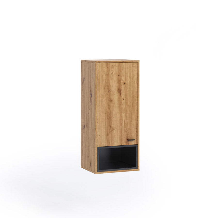 Pensile in legno da cucina o soggiorno, progettato come elemento modulare da abbinare con altri pensili e mobili della linea e creare la tua parete attrezzata completa. Reyna è realizzato interamente in legno ed è acquistabile in due versioni bicolore; bianco o nero opaco associato alla finitura naturale.