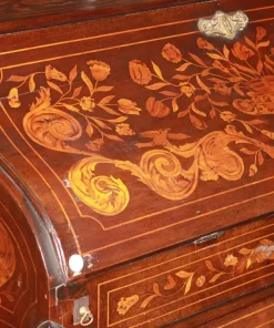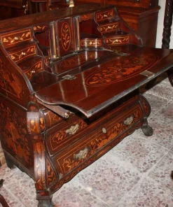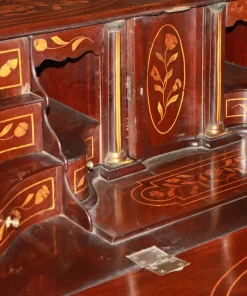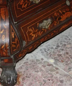 Ribalta olandese della seconda metà del 1700, stile Chippendale, in legno di mogano. Presenta cassetti, maniglie in bronzo, piedi artigliati e anta a ribalta con internamente cassetti; il tutto impreziosito da ricchi motivi di intarsio.