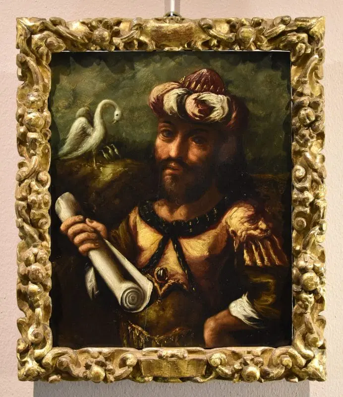 Il dipinto viene venduto completo di una cornice antica ed è corredato di certificato di autenticità e scheda iconografica descrittiva.