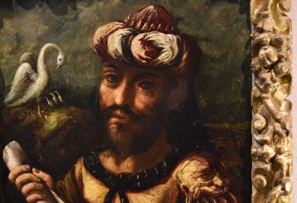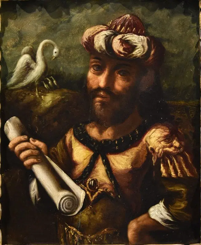 Nel nostro caso si tratta, in particolare, del ritratto di Geber (Jabir ibn Hayyan), nato nel 722 d.C, personaggio leggendario conosciuto come il più grande alchimista islamico medievale, e considerato il fondatore dell’alchimia persiana e della chimica moderna che ebbe il merito di trasformarla da pratica legata alla magia ad empirica, molto simile alla chimica moderna.