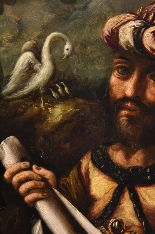 La sua figura viene qui accostata al cigno bianco, maestoso e sereno, animale simbolico per l’alchimia, poiché nel candore e nella forma dell’animale gli alchimisti trovarono sia la luce solare, sinonimo della natura maschile, sia la luce lunare immagine della femminilità.
