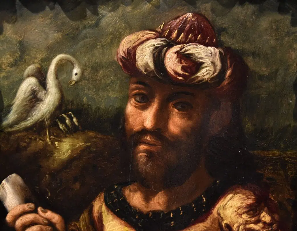 L’interazione tra l’alchimista e il cigno rappresenta un simbolo potente di equilibrio e armonia tra scienza e natura, mentre la pergamena rappresenta l’incessante ricerca di verità e di saggezza, un viaggio che si snoda attraverso i misteri dell’universo.