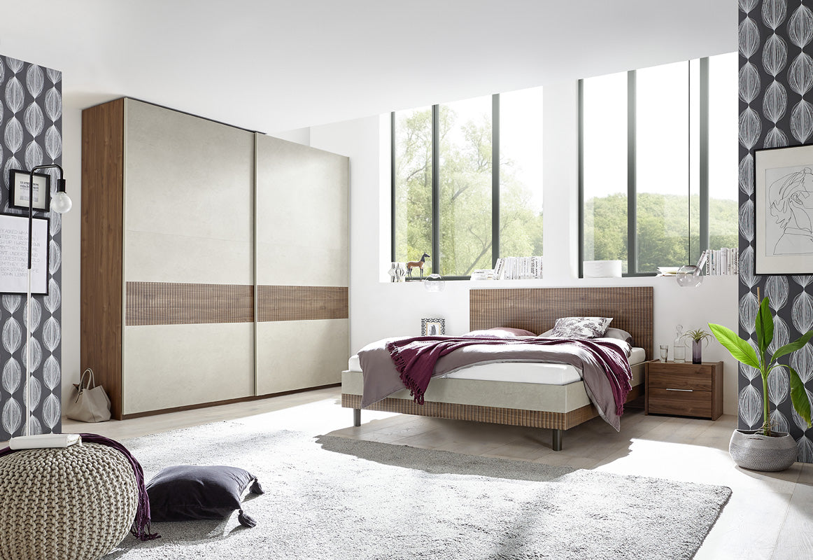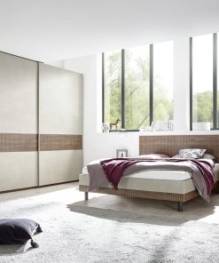 Rively è una nuova ed innovativa composizione per la camera da letto matrimoniale, composta da letto in legno Arkona da cm 160, armadio 2 ante scorrevoli Alain da cm 220×218 e coppia di comodini modello Mangal con 2 cassetti. Il design della nostra camera da letto completa si distingue per la combinazione con due finiture originali come argilla e noce serigrafato presente sulla testiera del letto e sull’inserto centrale dell’armadio.