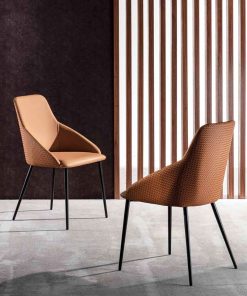 Per chi desidera una sedia per il soggiorno e che sia comoda come una poltroncina, il nostro negozio on line suggerisce questa particolare sedia moderna Roma. Infatti, della nostra sedia design se ne apprezza soprattutto la comoda scocca avvolgente rivestita in ecopelle e distinta dalla trama stampata in rilievo che decora tutto il retro della sedia. Le gambe sono prodotte in metallo verniciate colore nero con seduta che potrai scegliere tra 3 colori: tortora chiaro, nocciola, grigio titanio.
