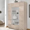 La vetrina moderna Ruby, infatti, esibisce un design esclusivo, caratterizzato dal frontale diviso da quadrati con disegni serigrafati, con fantasie diverse geometriche e floreali, e rese più suggestive per la laccatura lucida che produce un aspetto riflettente e luccicante.
