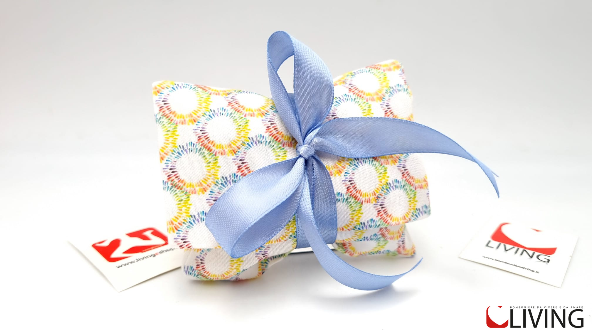 Il prezzo iniziale corrisponde al sacchetto vuoto per il fai da te, senza nastri e accessori, se si sceglie l’opzione bomboniera confezionata, il sacchetto arriverà con 5 confetti a scelta, bigliettino personalizzabile con nome/tipo di evento/data e nastrino.