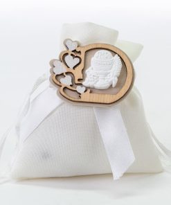Il prezzo iniziale corrisponde al sacchetto vuoto per il fai da te, se si sceglie l’opzione bomboniera confezionata, il sacchetto arriverà con 5 confetti a scelta, bigliettino personalizzabile con nome/tipo di evento/data e nastrino.