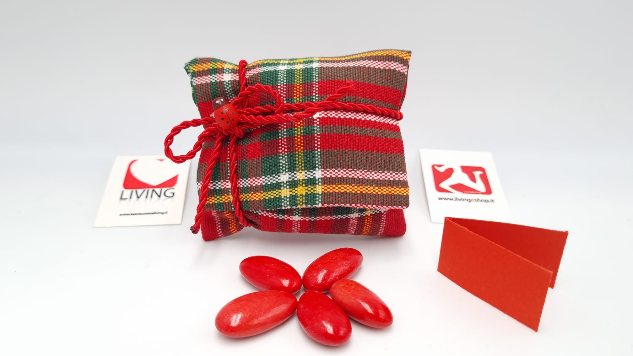 Il prezzo iniziale corrisponde al sacchetto vuoto per il fai da, se si sceglie l’opzione bomboniera confezionata, il sacchetto arriverà con 5 confetti a scelta, bigliettino personalizzabile con nome/tipo di evento/data e nastrino.