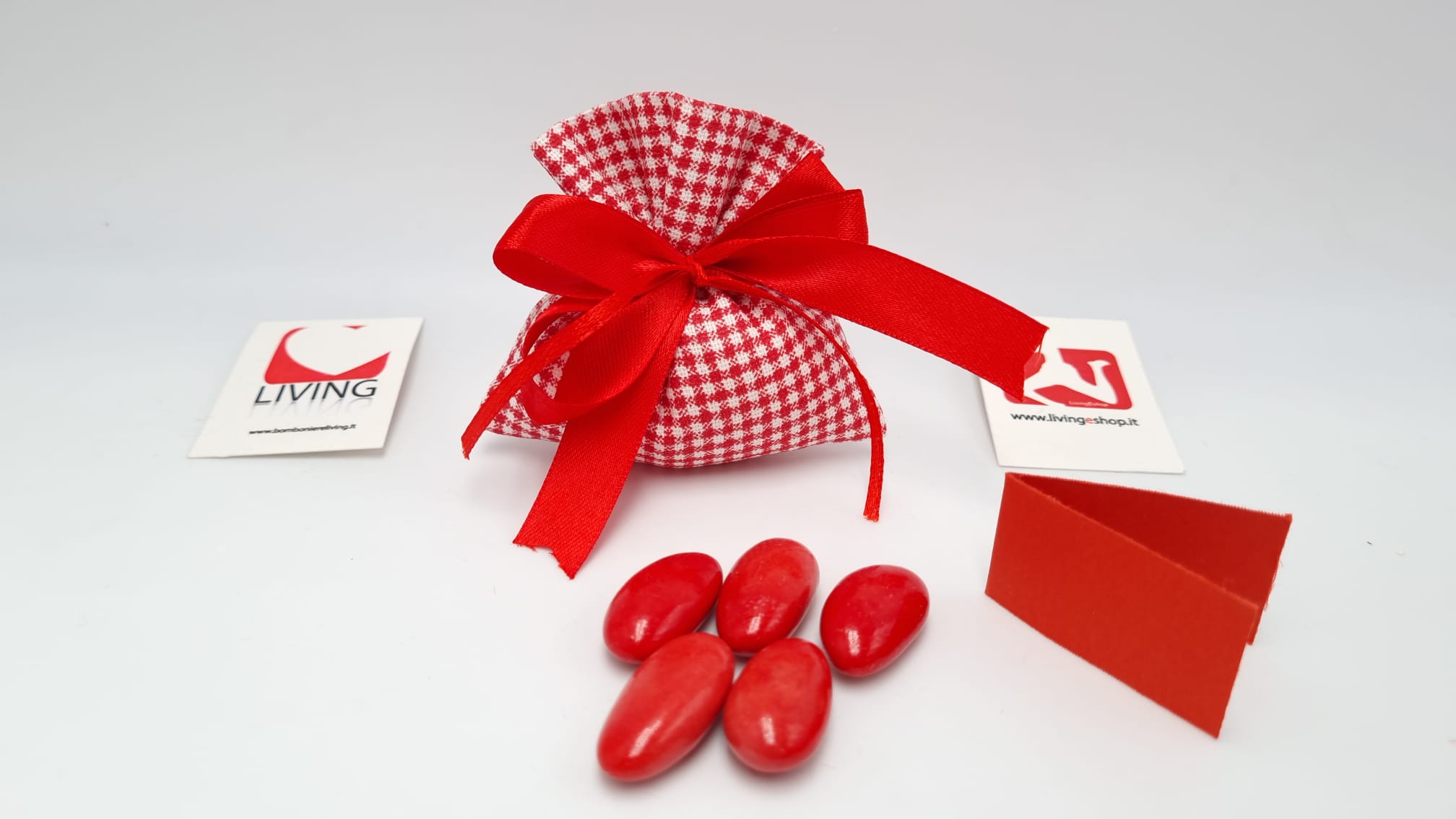 Il prezzo iniziale corrisponde al sacchetto vuoto per il fai da, se si sceglie l’opzione bomboniera confezionata, il sacchetto arriverà con 5 confetti a scelta, bigliettino personalizzabile con nome/tipo di evento/data e nastrino.
