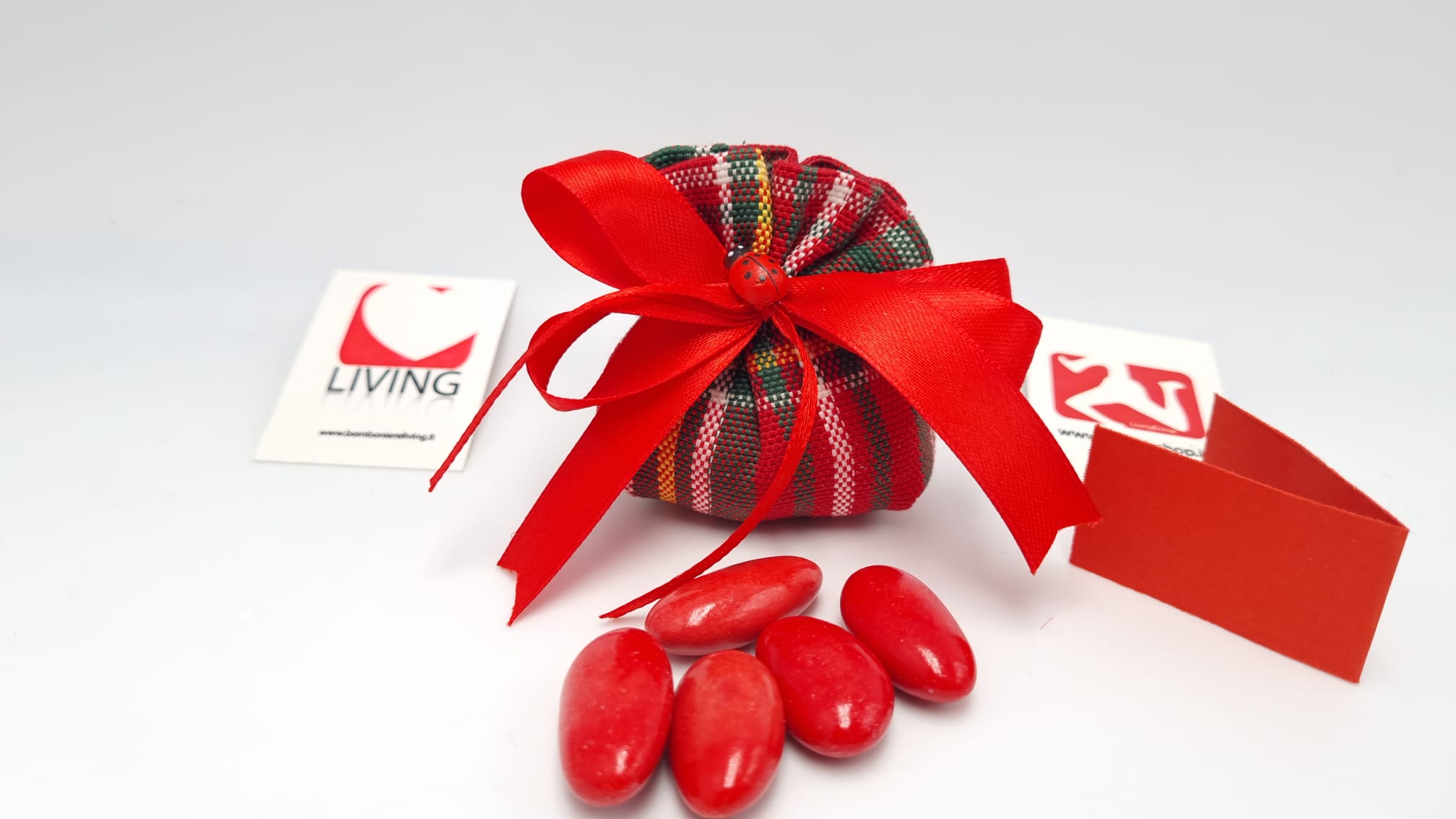 Il prezzo iniziale corrisponde al sacchetto vuoto per il fai da, se si sceglie l’opzione bomboniera confezionata, il sacchetto arriverà con 5 confetti a scelta, bigliettino personalizzabile con nome/tipo di evento/data e nastrino.