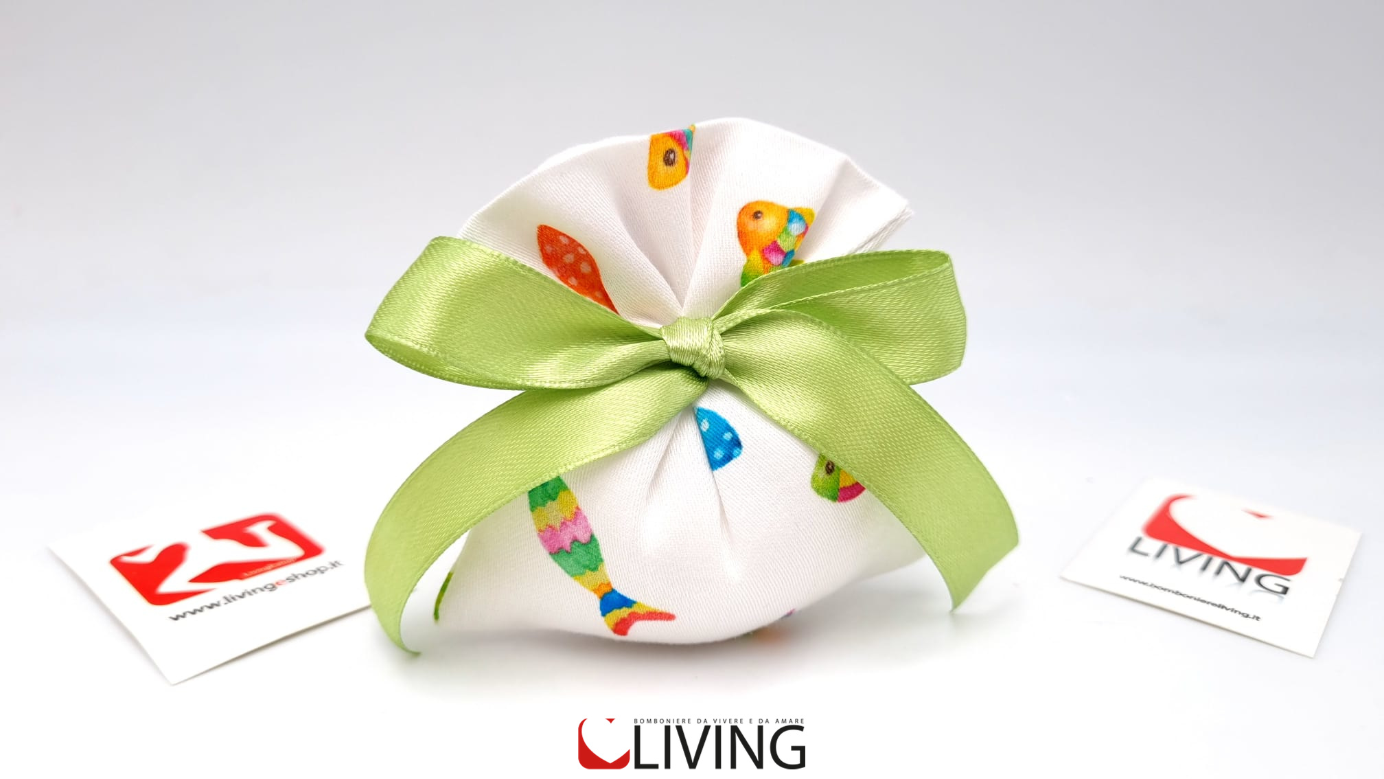 Il prezzo iniziale corrisponde al sacchetto vuoto per il fai da te, senza nastri e accessori, se si sceglie l’opzione bomboniera confezionata, il sacchetto arriverà con 5 confetti a scelta, bigliettino personalizzabile con nome/tipo di evento/data e nastrino.