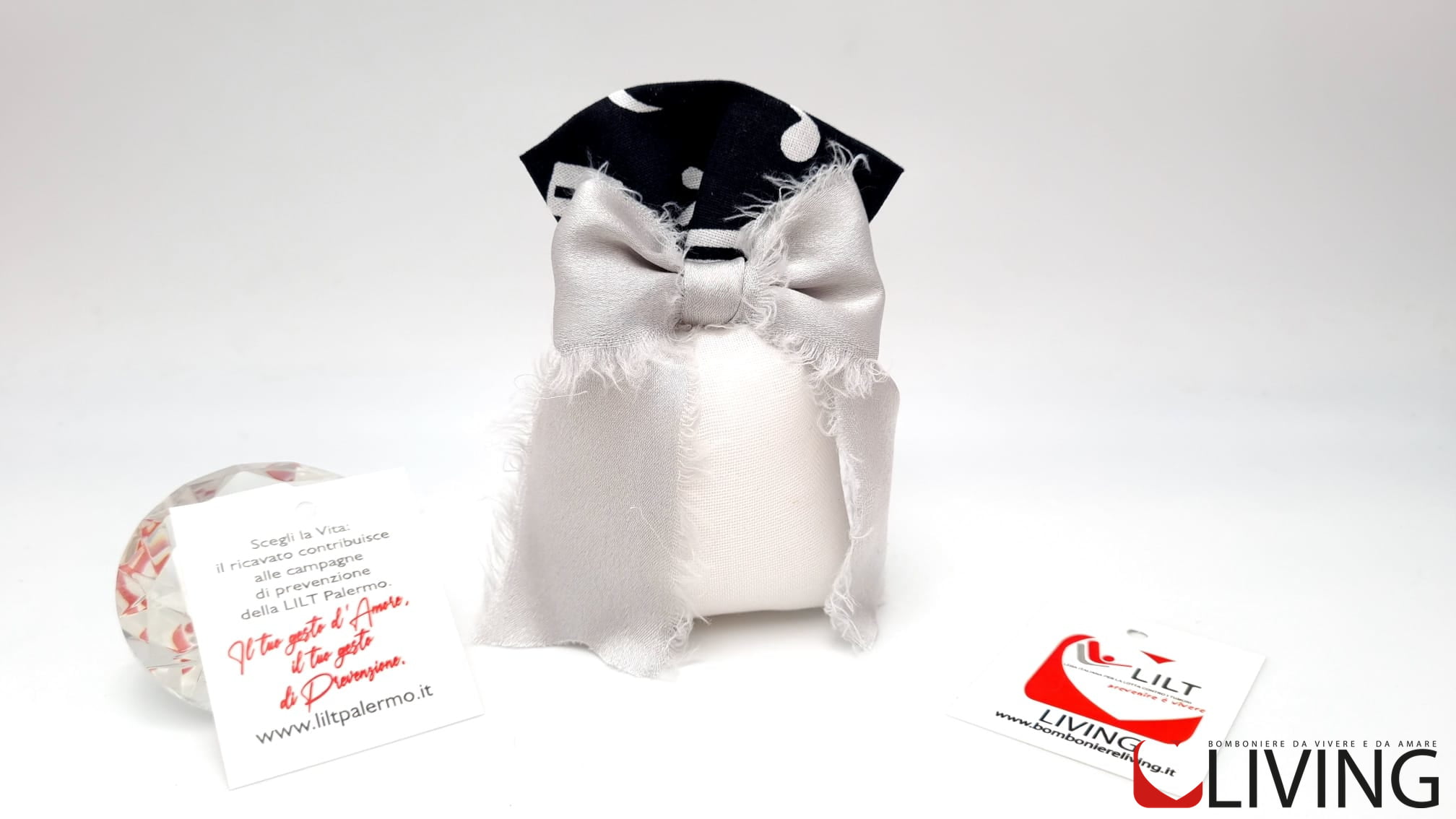 Contribuisci alle campagne di prevenzione della Lega Italiana per la lotta contro i Tumori di Palermo. Il 20% del valore viene devoluta alla LILT di Palermo. Acquistando una bomboniera della linea LILT-LIVING ci aiuterai a sostenere le campagne di prevenzione della Lega Italiana per la Lotta contro i Tumori.