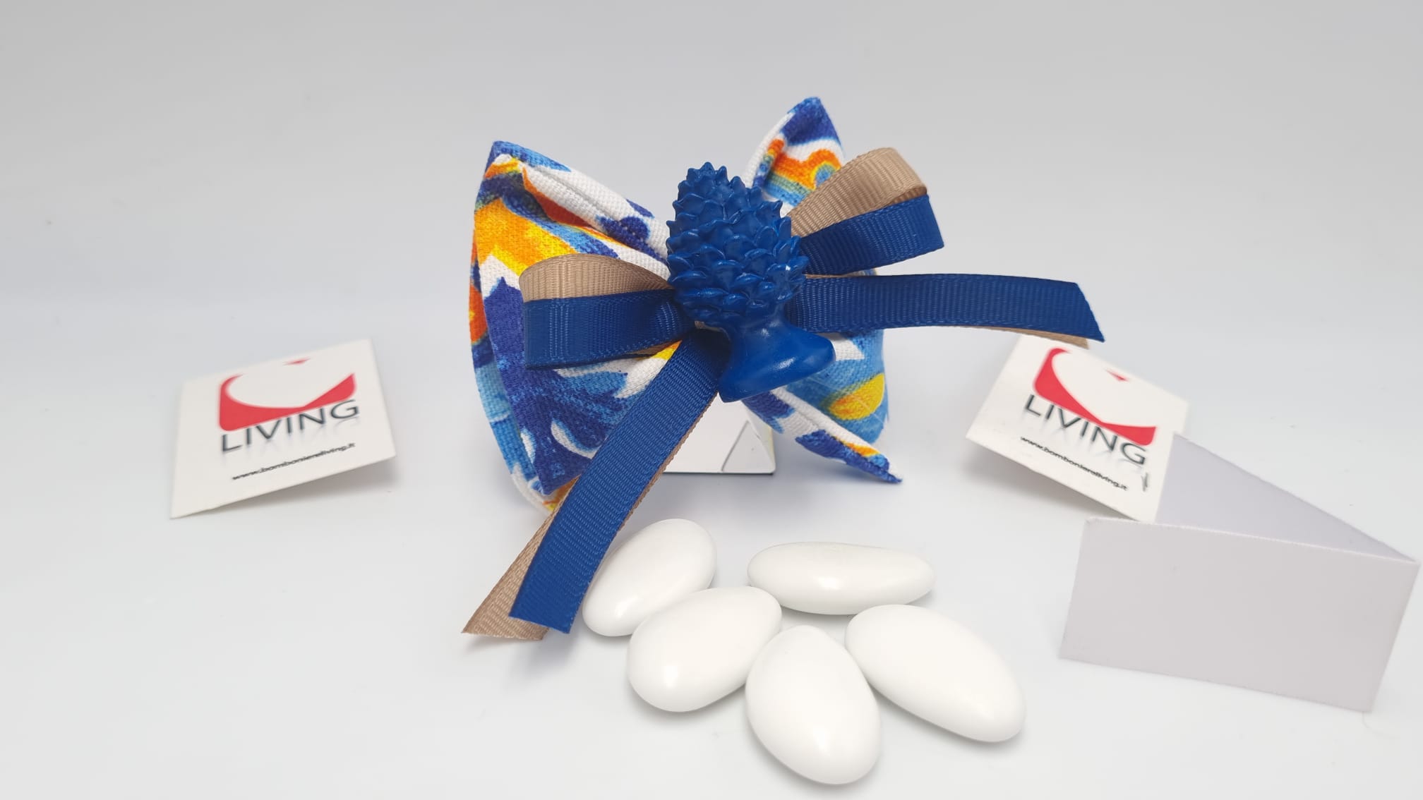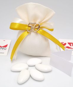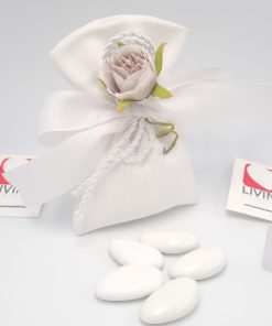Il prezzo iniziale corrisponde al sacchetto vuoto per il fai da te, se si sceglie l’opzione bomboniera confezionata, il sacchetto arriverà con 5 confetti a scelta, bigliettino personalizzabile con nome/tipo di evento/data e nastrino.