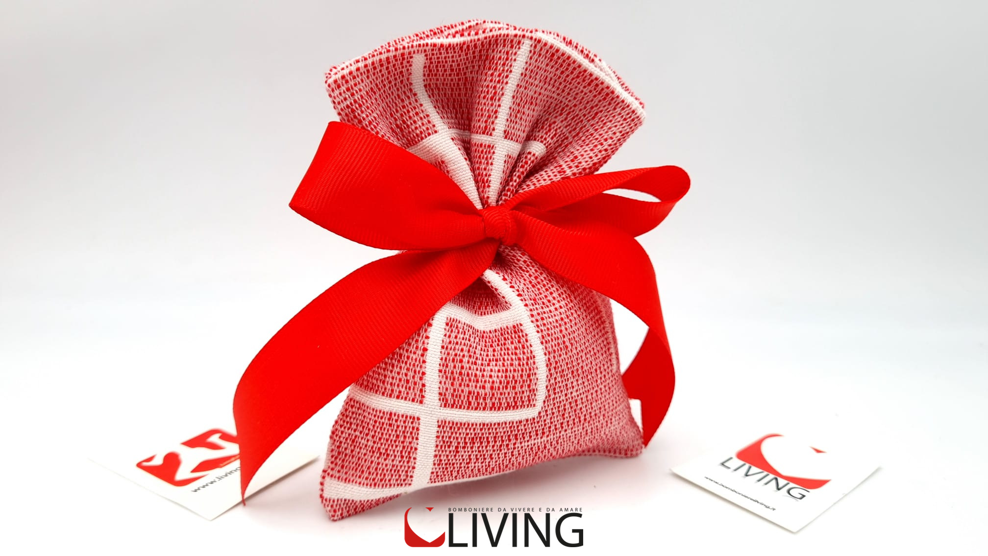 Il prezzo iniziale corrisponde al sacchetto vuoto per il fai da te, senza nastri e accessori, se si sceglie l’opzione bomboniera confezionata, il sacchetto arriverà con 5 confetti a scelta, bigliettino personalizzabile con nome/tipo di evento/data e nastrino.
