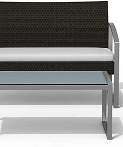 Salotto da esterno composto da 1 tavolo, 1 divano e 2 poltrone realizzate in metallo. Il set si presenta con un look moderno ed elegante con la disponibilità di una colorazione bianca o nera. Poltrone e divano comprendono un morbido cuscino bianco che assicura comfort e comodità.