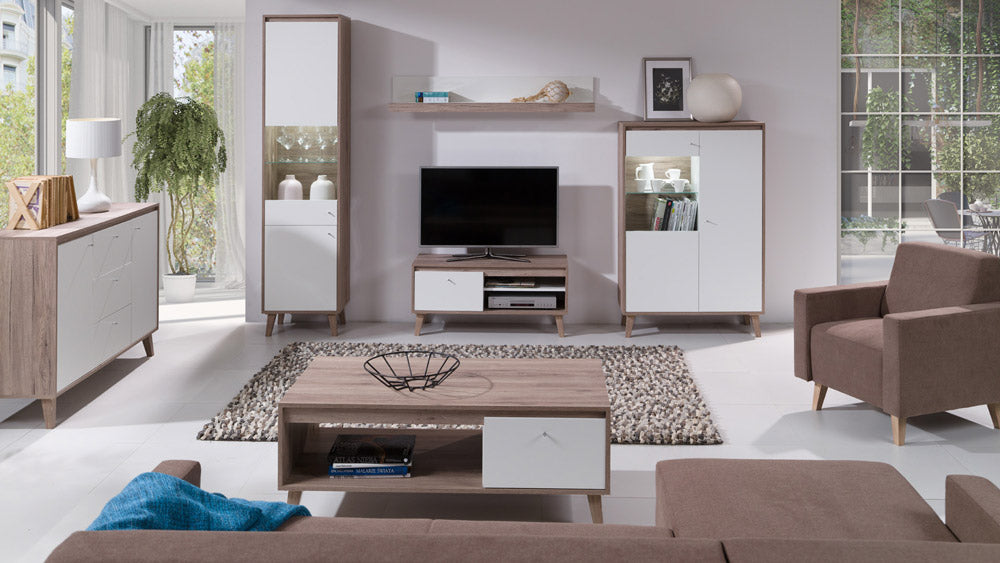 Samos – Soggiorno completo con vetrina mobile tv credenza e mensola – vari colori