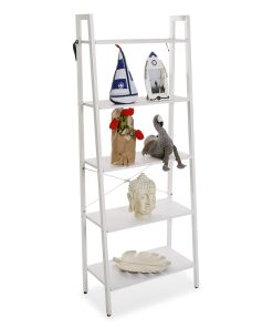 Scaffale libreria realizzata in metallo e legno. La scelta di usare solo il colore bianco è un forte richiamo ad uno stile shabby, uno stile semplice che rende la libreria adatta ad ogni ambiente. Dispone di 5 piani di appoggio da allestire con foto, oggettistica o libri e riviste per decorare l’ambiente.