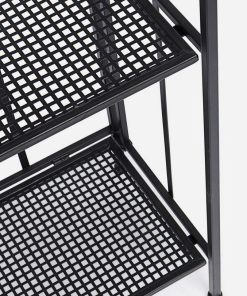 Etagere in stile industrial realizzato in acciaio colore nero, fornito di 4 ripiani e decorato con inserti in legno e rattan. Utilizzabile come elemento d’arredo da arricchire con piante o altro, questo scaffale potrà diventare funzionale, dove inserire libri o oggetto d’uso quotidiano, dotato di struttura pieghevole che permette di richiuderlo facilmente.