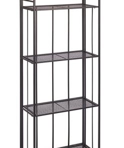 Etagere in stile industrial realizzato in acciaio colore nero, fornito di 4 ripiani e decorato con inserti in legno e rattan. Utilizzabile come elemento d’arredo da arricchire con piante o altro, questo scaffale potrà diventare funzionale, dove inserire libri o oggetto d’uso quotidiano, dotato di struttura pieghevole che permette di richiuderlo facilmente.