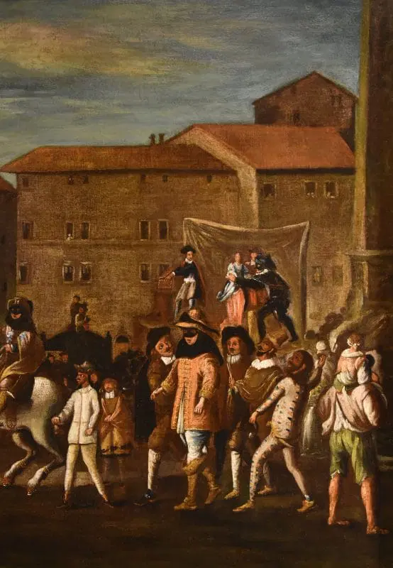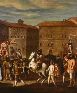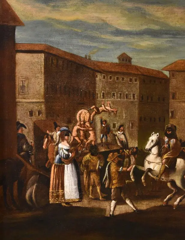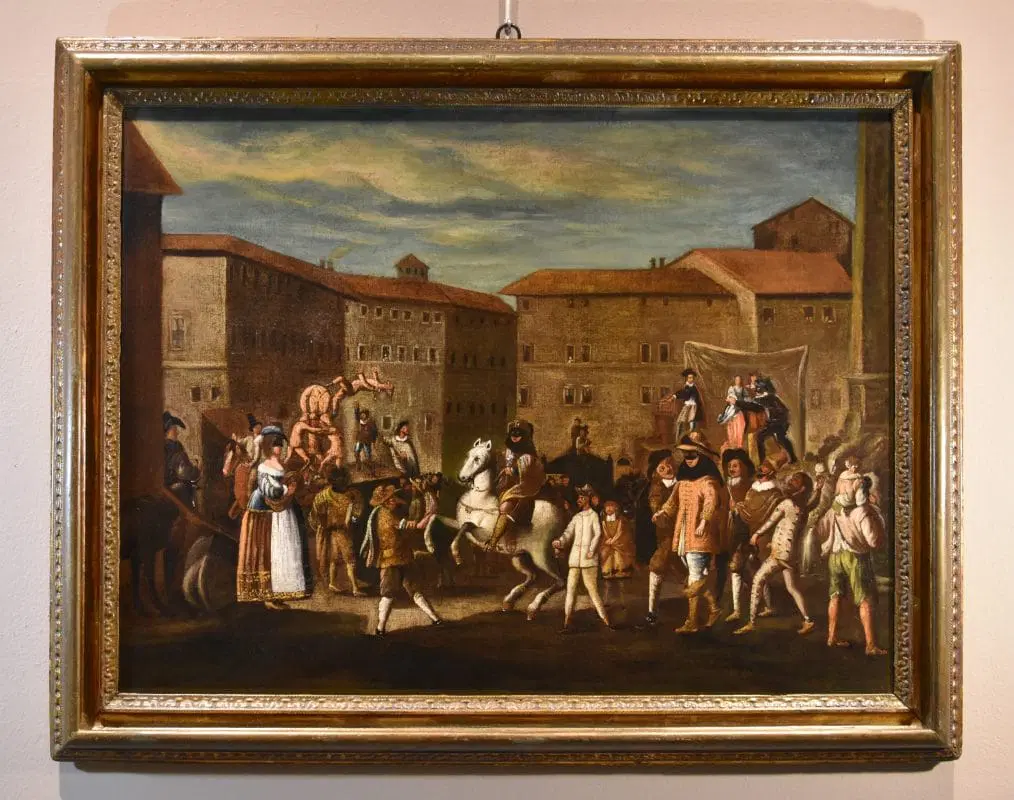 Tra i diversi pittori che raffigurarono scene carnevalesche, un posto di riguardo spetta al romano Michelangelo Cerquozzi (Roma 1602 – 1660), alla cui bottega possiamo agevolmente ricondurre la nostra opera.