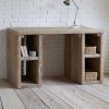 Scrivania realizzata in legno di recupero, dalla semplicissima struttura lineare, ma solida e resistente, evidente nella robustezza degli assi che la compongono.