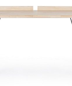 Scrivania da studio definita da forme essenziali composta da base a due sostegni realizzata in acciaio colore nero e piano in legno finitura naturale. Una scrivania come questa si presta per arredare contesti in stile industriale e minimale.
