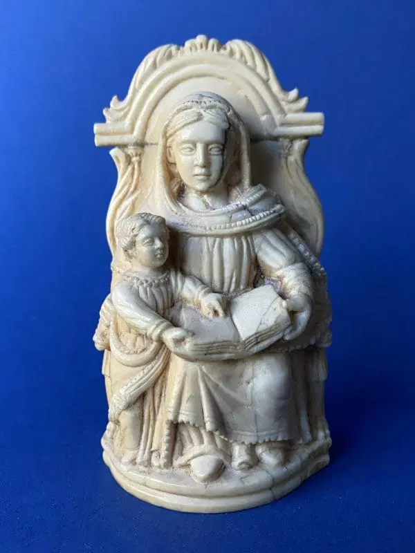 Scultura in avorio che ritrae Sant’Anna con la Vergine Maria (Certificato Cites)