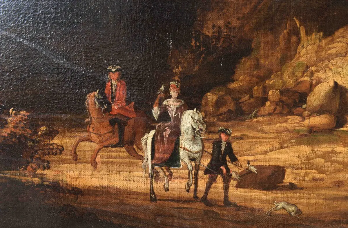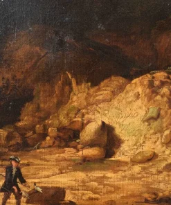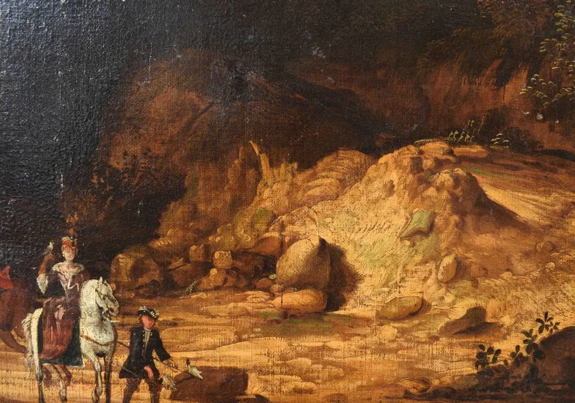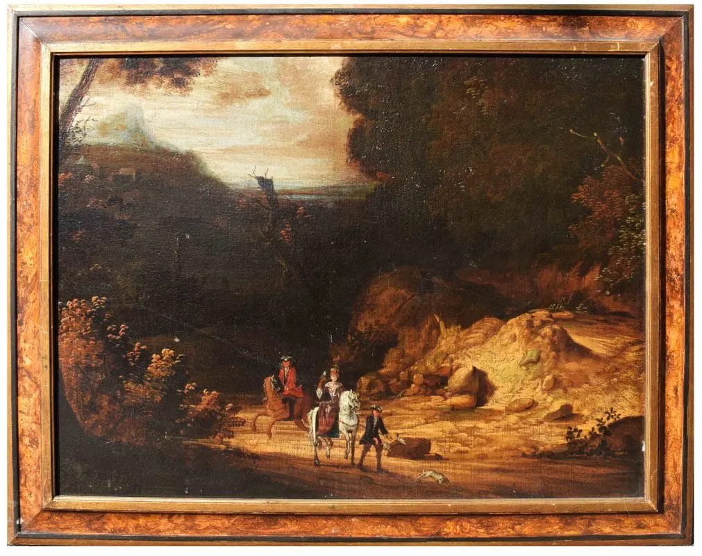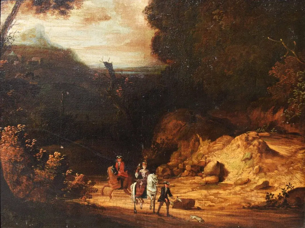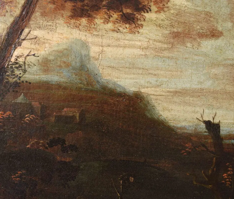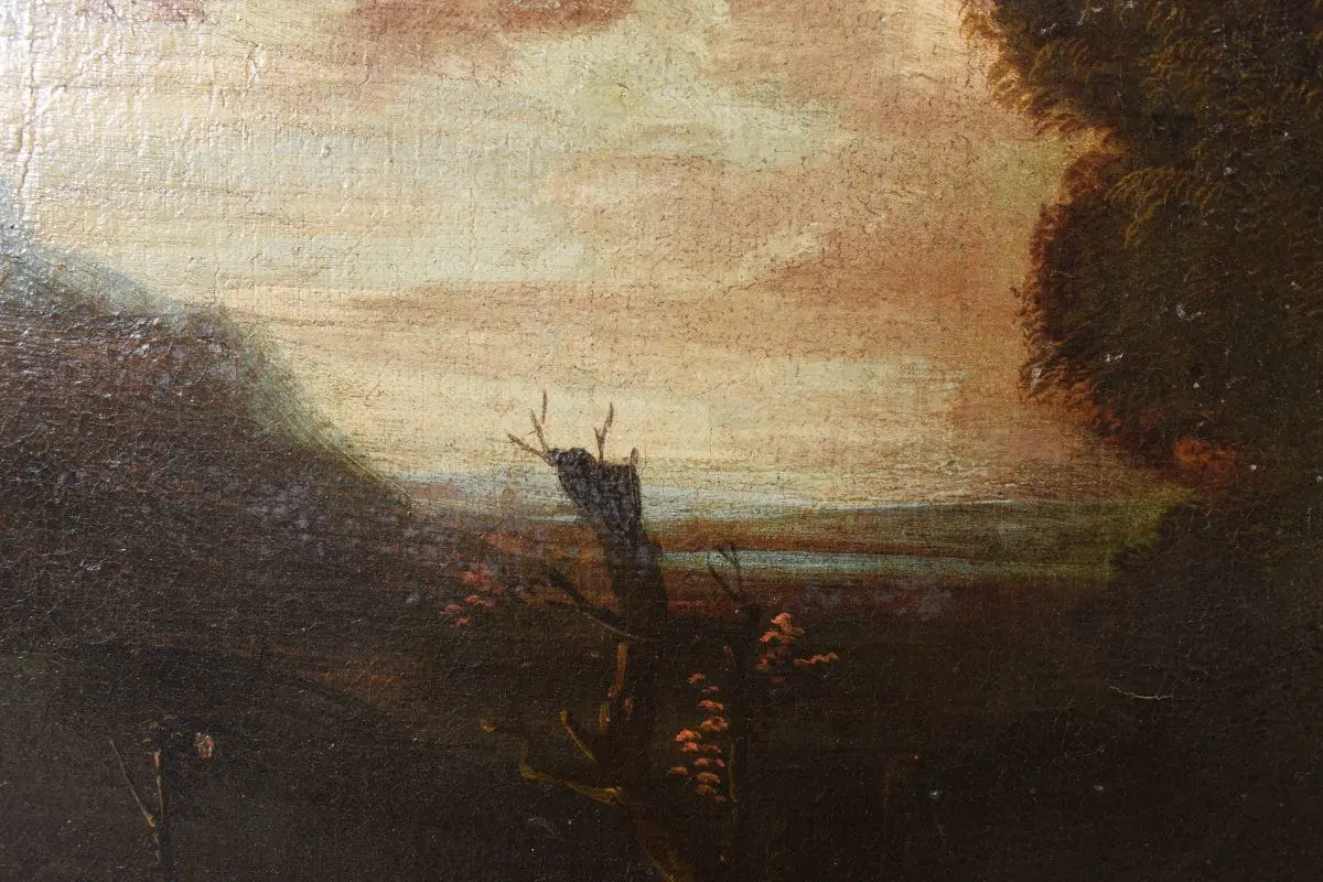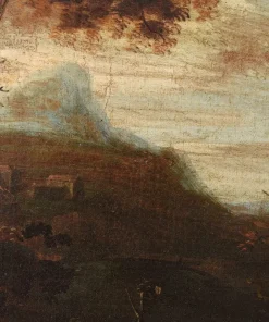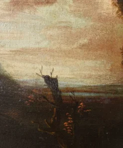 L’opera si inserisce nell’ambito di produzione di pittori paesaggisti fiamminghi, olandesi e francesi, che arricchirono la scena romana nel XVII. Tra i vari artisti, in relazione alla presente opera, vanno citati Pandolfo Reschi (1643-1696), Frederik de Moucheron (1633-1686) e soprattutto Jan Both (Utrecht, 1618-1652). L’artista fu allievo del pittore Gerard van Honthorst e si trasferì in Italia intorno al 1635. A Roma fu influenzato dall’arte di Claude Lorrain, con il quale collaborò, ma altrettanto importante è la sua produzione di scene di genere a carattere bambocciante, in cui descrive episodi di vita quotidiana. Al suo ritorno a Utrecht (probabilmente ne 1642) proseguì a dipingere paesaggi di gusto italianizzante immersi in una luce calda e dorata, in sintonia con Bartholomeus Breenbergh.