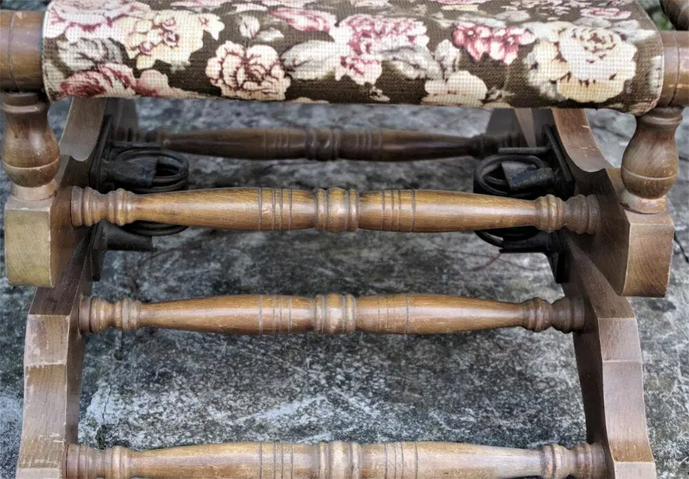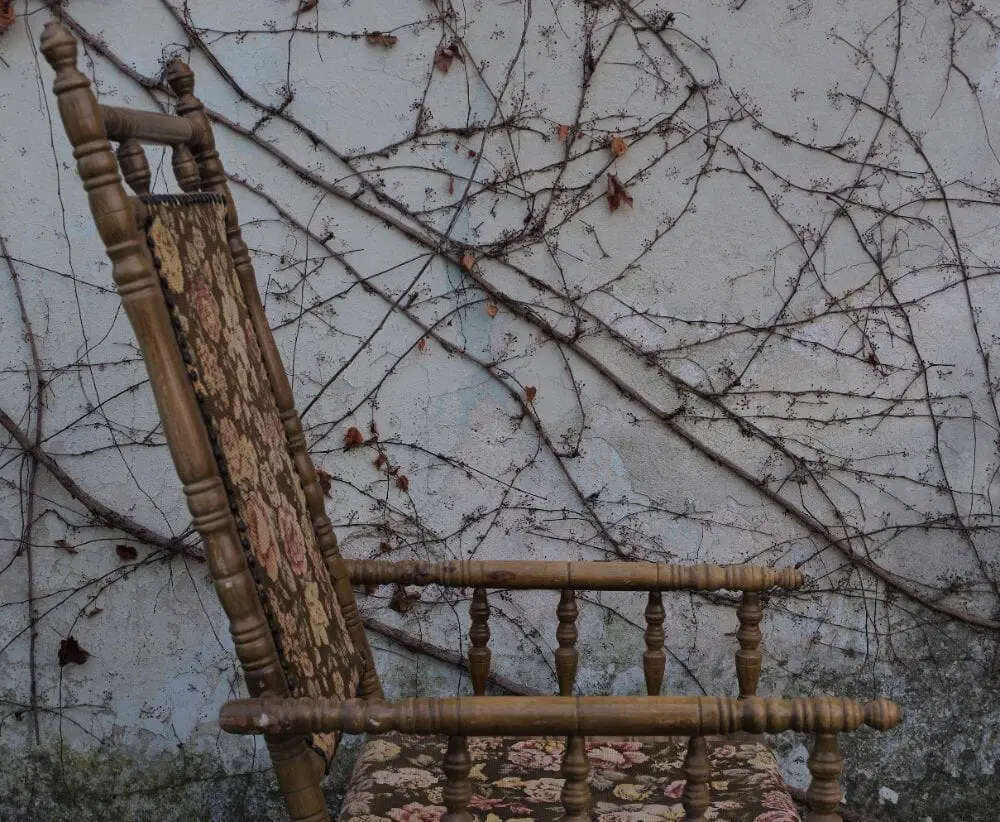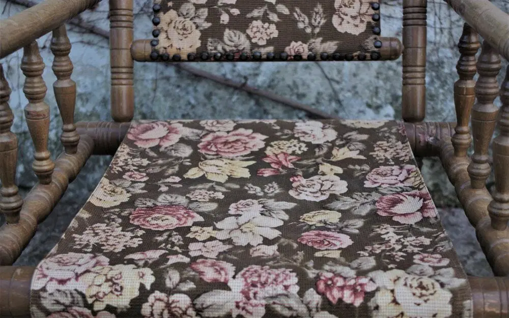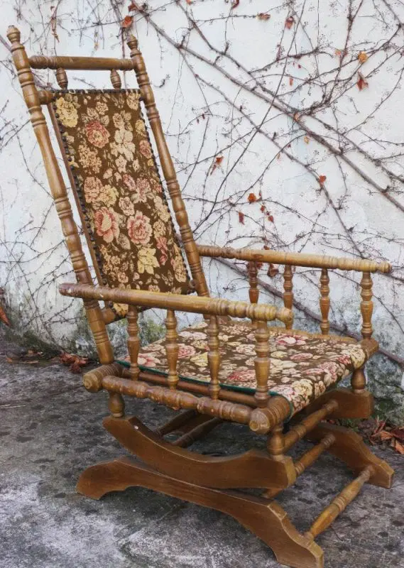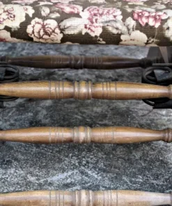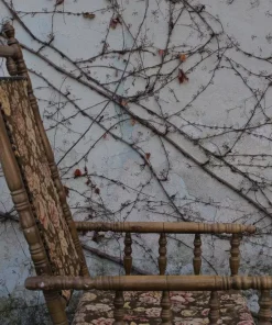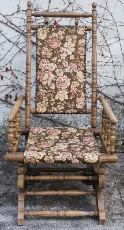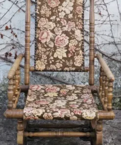 Design Vintage Antica sedia a dondolo inglese ricamata anni ‘30, in legno faggio tinta noce e tessuto a fiori Periodo del design: 1920 – 1949 Periodo di produzione: 1930 – 1939 Paese di produzione: Italia Stile Vintage Stato Buono — l’oggetto vintage è completamente funzionante ma presenta segni di usura come graffi, ammaccature, difetti del materiale e riparazioni Leggera usura dovuta all’età e all’utilizzo, Leggeri segni di usura dovuti all’età Materiale Faggio, Tessuto Colore Marrone Larghezza 70 cm Profondità 53 cm Altezza 110 cm Altezza della seduta 36 cm