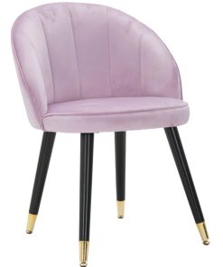 La nostra sedia design presenta una notevole imbottitura e rivestita in tessuto colore rosa effetto velluto rifinita con cura e abbellita da cuciture verticali. Il rivestimento è disponibile in 3 varianti: crema, rosa o nero.