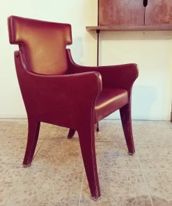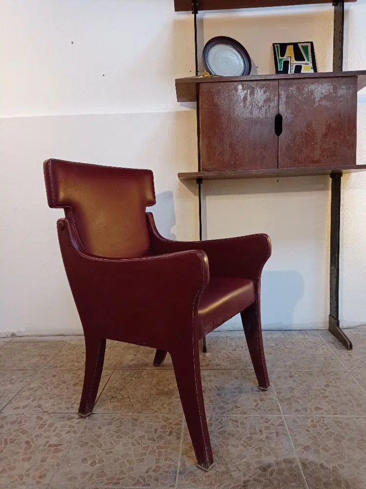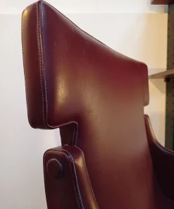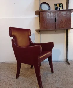 La poltrona è in eccellenti condizioni con tessuto skai originale dell’epoca di colore rosso granata.