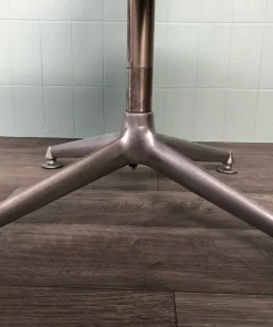 Base in alluminio pressofuso con piedini finali rotondi regolabili. La seduta è in similpelle.