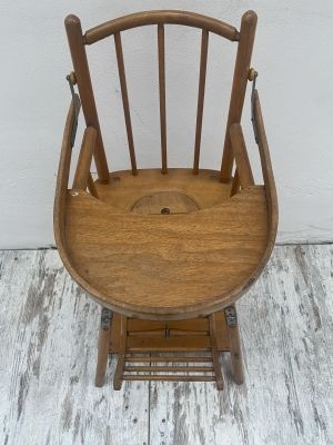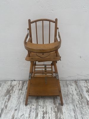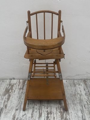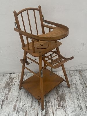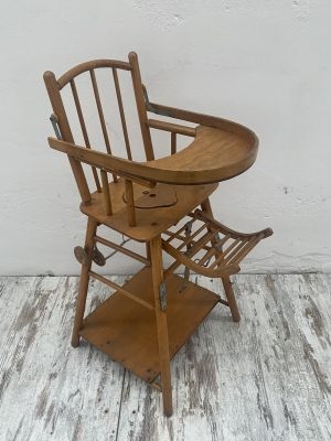 Cè chi guarda avanti, e chi invece si volta indietro con tenerezza. Questo seggiolone da bambino degli anni 50, con le sue forme semplici e robuste, è un omaggio al tempo che fu quando i mobili per i più piccoli erano fatti per durare, passare di mano in mano, e raccogliere storie.