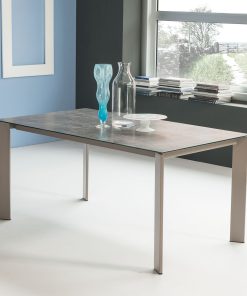 Tavolo moderno allungabile Selig con struttura in metallo e piano che potrai realizzare in vetro o ceramica opaca, creando un tavolo elegante oltre che pratico.