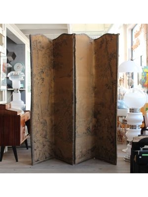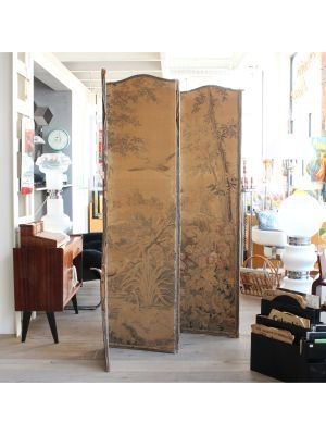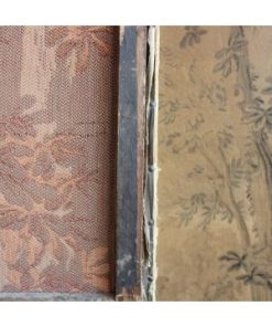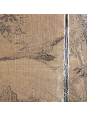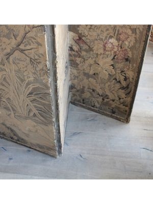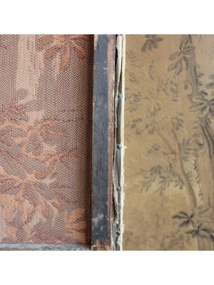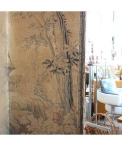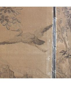 Il ricamo, ricco e dettagliato, sembra catturare un attimo sospeso nel tempo, con il colore seppia che dà un sapore di bellezza sciupata, come se la scena fosse stata sognata e poi dimenticata. Proveniente dallInghilterra di fine 800, questo separè è un pezzo che non solo divide gli spazi, ma evoca anche unatmosfera di introspezione e malinconia.