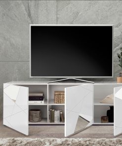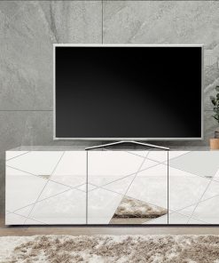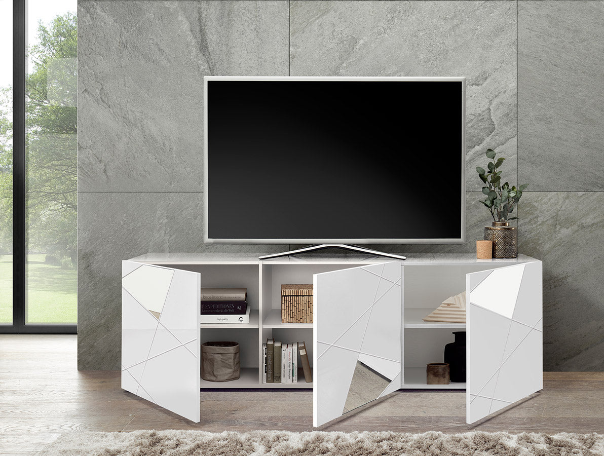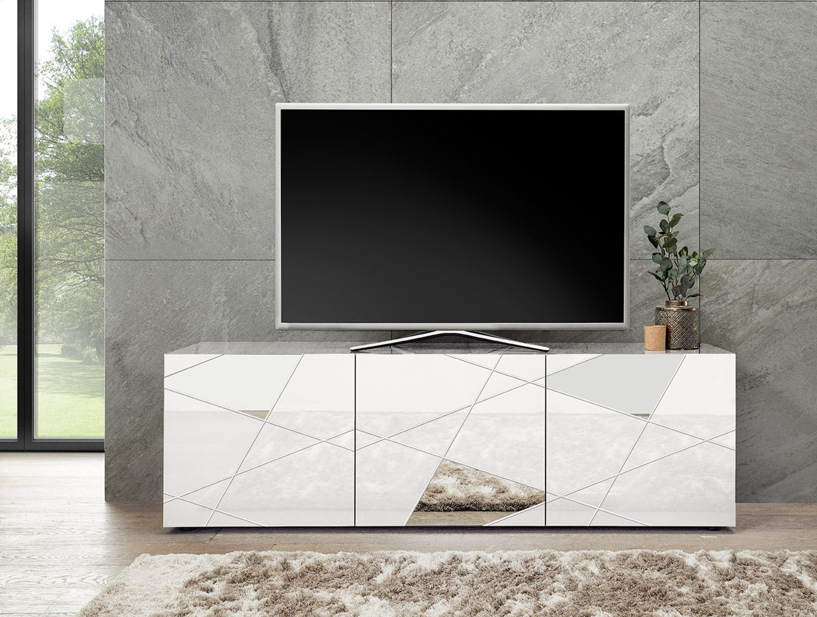 Sereno – Mobile soggiorno porta tv 3 ante in legno bianco con specchi cm 181x42x57h