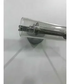 Applique risalenti anni ’90 in metallo cromato e vetro trasparente con base satinata. Lampadina non inclusa.