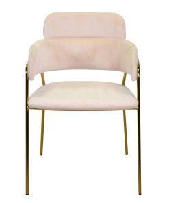 Comoda poltroncina design dallo stile elegante e chic, grazie al metallo dorato che compone la struttura e al velluto colore crema che la riveste