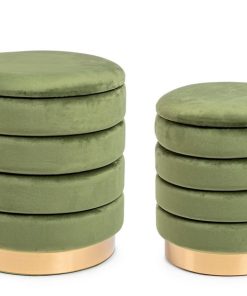 Set da 2 Pouf tondo contenitore rivestito in velluto con base in metallo – vari colori
