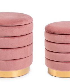 Set da 2 Pouf tondo contenitore rivestito in velluto con base in metallo – vari colori