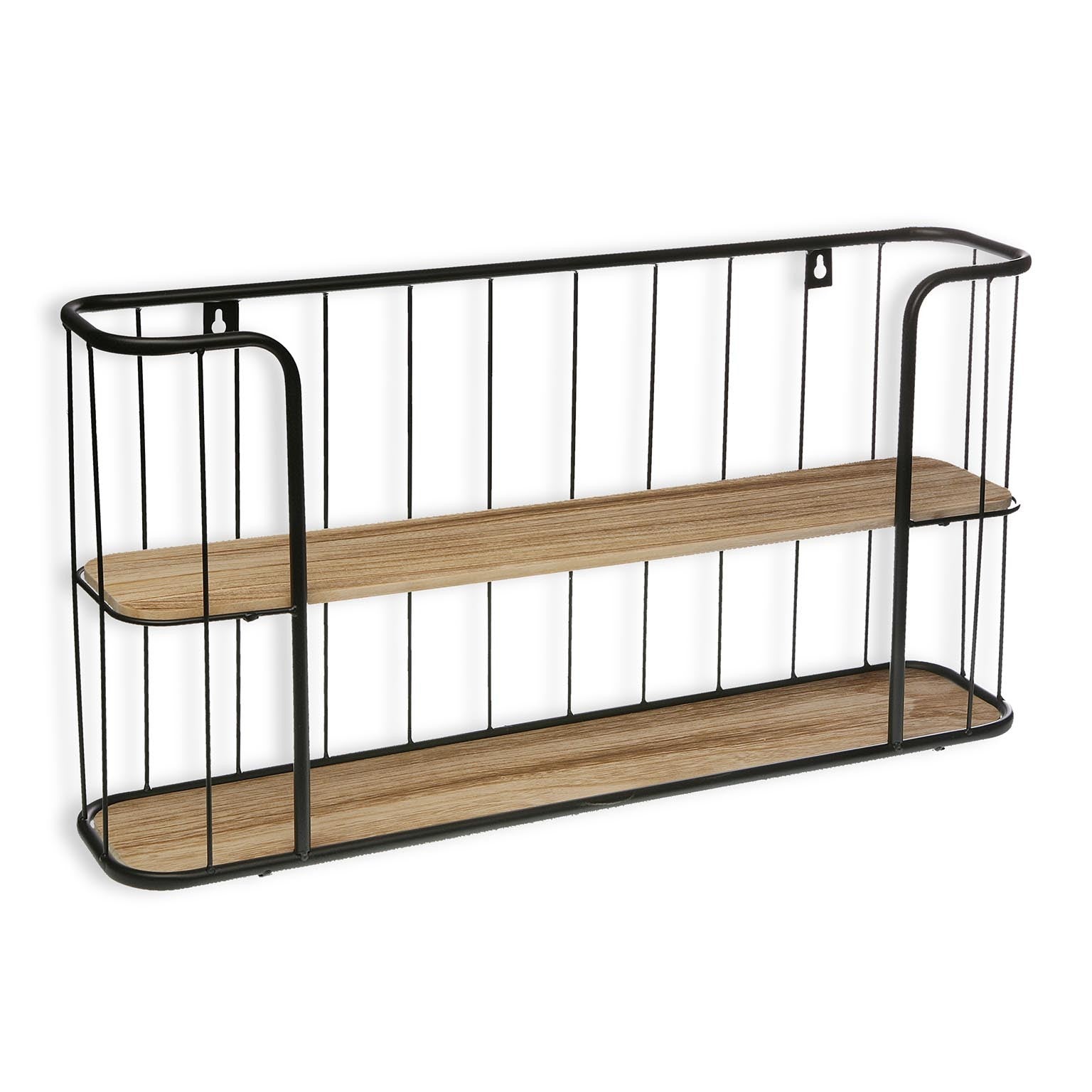 Set da 2 – Scaffale da parete realizzato seguendo i caratteri di uno stile industrial, che prevede l’intreccio di due materiali di costruzione come il metallo ed il legno. In questo articolo vediamo che la struttura si presenta in metallo di colore nero e crea la protezione attorno alle assi in legno con finitura naturale che creano i due piani di appoggio disponibili da allestire pere decorare l’ambiente in cui sono fissati. Con il loro design elegante e moderno, si adattano facilmente ad ogni ambiente.