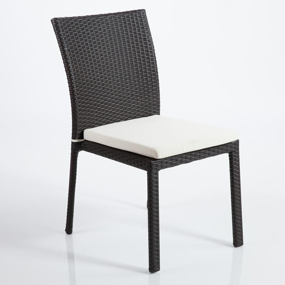 Sedia realizzata con tradizionale intreccio in polyrattan, ideale per l’arredo outdoor e non solo. Dotata di cuscino, questa sedia moderna è ideata per l’arredo di spazi all’aperto che sia da uso domestico o contract.