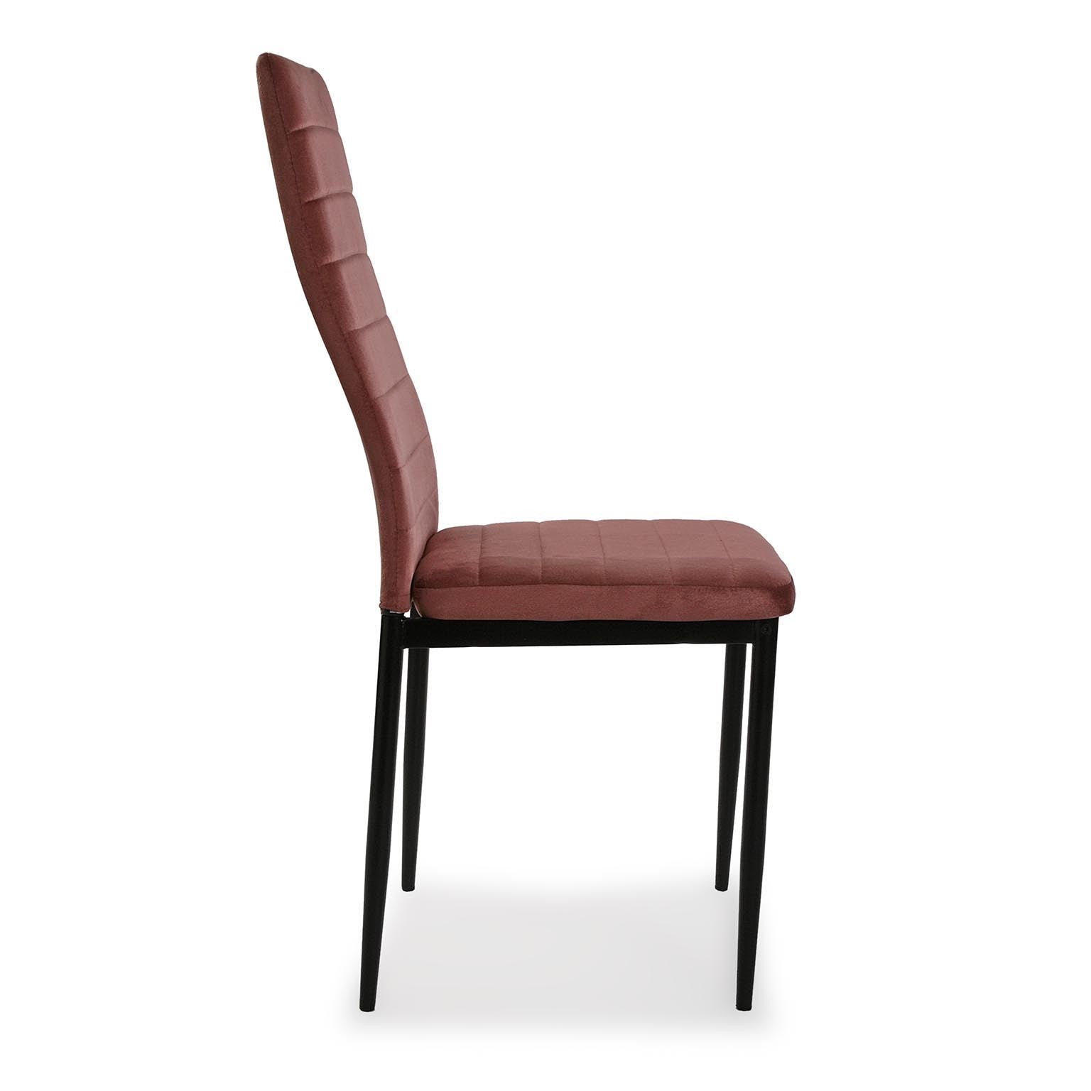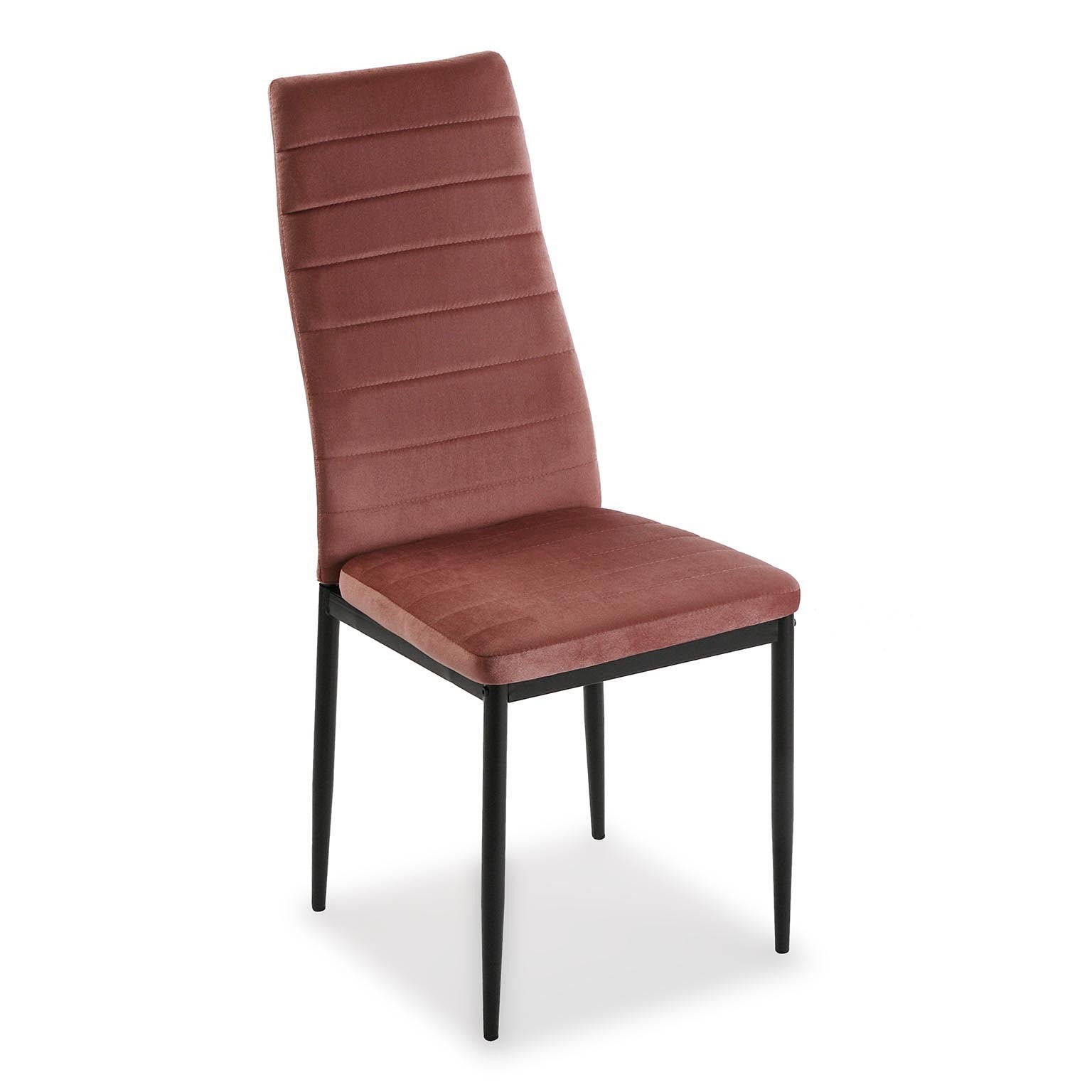 Set da 2 – Sedia moderna realizzata in metallo con seduta e schienale in velluto morbido. La sedia ricalca tratti di stile moderno, come la forma dello schienale e le decorazioni apportate al rivestimento che rendono l’elemento molto moderno e anche molto glamour, consentendo di posizionare le sedie in ogni tipo di ambiente. Schienale e seduta sono realizzati con un’imbottitura morbida che fornisce seduta e postura ad alta comodità.