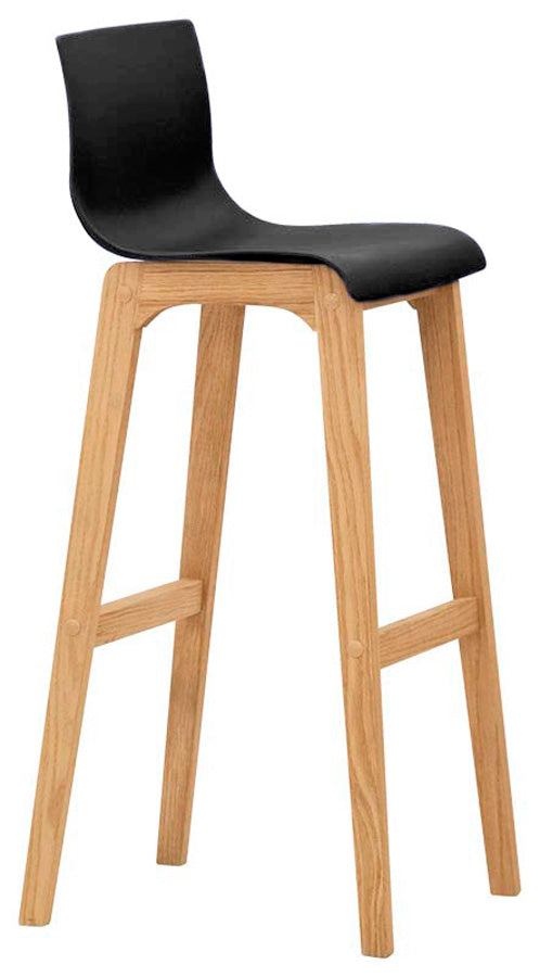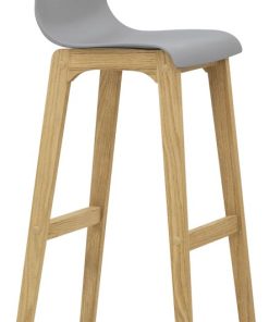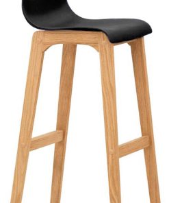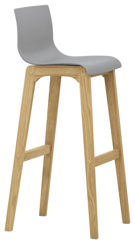 Sobrio, robusto e pratico sgabello alto dal design moderno composto da struttura in legno di quercia e scocca in polipropilene.